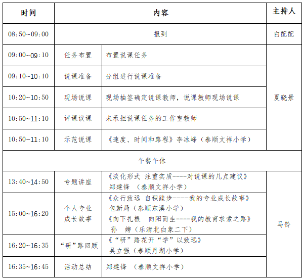 根据市名师工作室活动的文件精神和工作室研修计划,为进一步促进工作室教师对说课和专业发展的认识和理解,为个人说课和专业发展提供借鉴,提升工作室教师的专业成长,经研究,决定举行第16次主题研讨暨结业活动。现将有关事项通知如下: