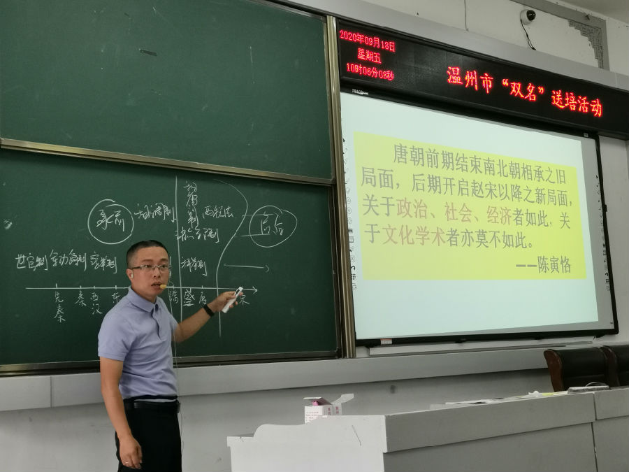 2020年9月18日,温州市黄静名师工作室第17次活动在苍南灵溪中学举行。活动部分联合了温州市高中历史的“双名”送教活动,工作室全体学员与指导师参加了本次活动。
