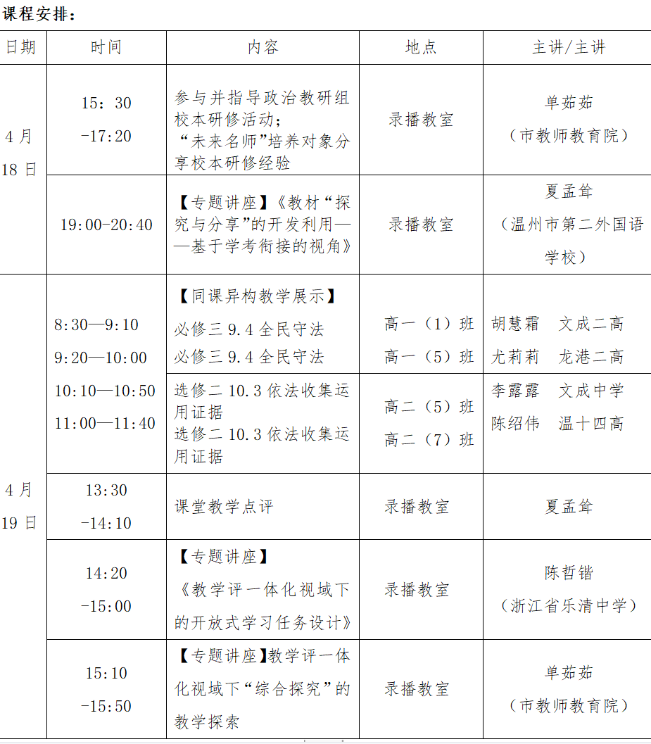 关于举行温州市高中政治单茹茹“名师送教”工作室第7次活动的通知
