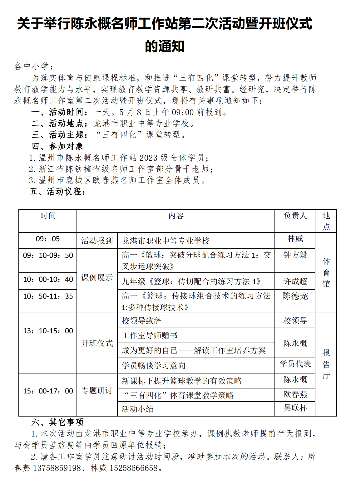 关于举行温州市陈永概“名师送教”工作室第二次活动的通知