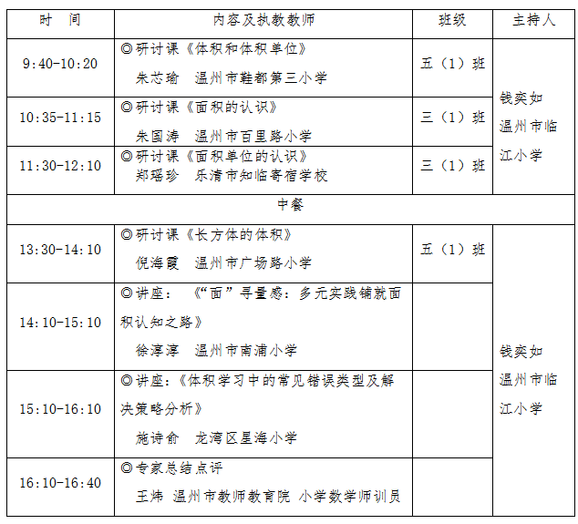 为进一步深化为进一步深化“图形与几何”领域的教学研究与实践,促进“几何直观”教学的深入研究与实践,特举行温州市夏明燕名师工作室、温州市陈舒舒名师工作室联合教研活动,具体安排如下: