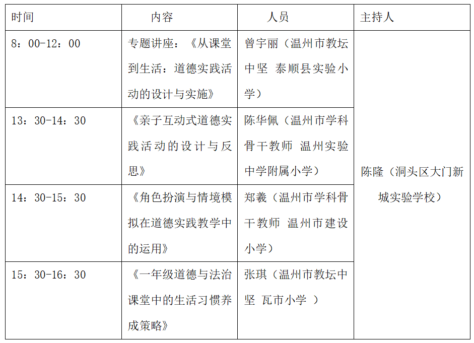 为进一步落实立德树人根本任务,创新小学道德与法治课程实施路径,提升教师指导学生开展道德实践的能力,经研究决定开展温州市2023级黄又绿名师工作室第二十次活动。现就有关事项通知如下: