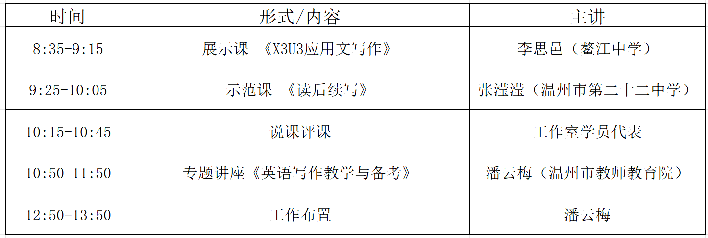 关于举行温州市潘云梅高中英语“名师送教”工作室第11次活动的通知